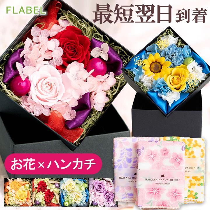 早割 母の日 花 プリザーブドフラワー 22 プレゼント ギフト おしゃれ ボックスフラワー アンティエット と 今治産 ハンカチ セット 9105 Flabel 通販 Yahoo ショッピング